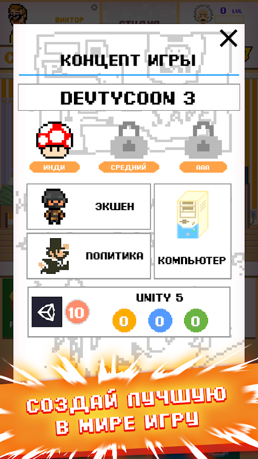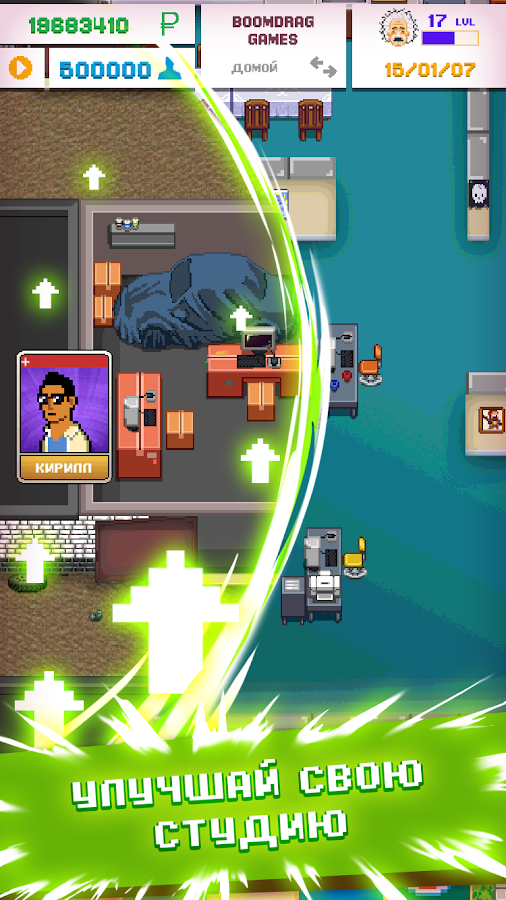 Idle Dev Empire Tycoon sim business game simulator – an experimental simulator of a development studio that spends hours dealing with projects coming from customers and gradually turning into industry stars. The gameplay is 90% centered around meditative load distribution, interaction with characters and upgrades of available equipment - you have to purchase new computers, mice and even software. In addition to tasks from customers, there is also an improvisation option: you have to think through future projects from scratch, invest resources and earn money, hoping to outperform competitors.