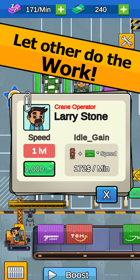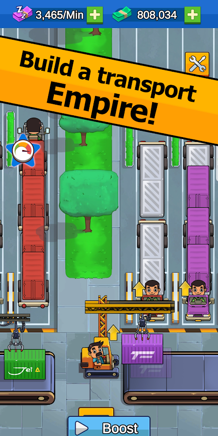 Transport It! - Idle Tycoon – an intensive time management strategy with elements of a “clicker” and economic simulator. The gameplay is based on a transport empire that used to transport goods on land, railways, and even air, but now has lost customers and remains with a rusted conveyor and a leaky warehouse. The time has come to restore former greatness, taking advantage of a modest starting budget and a cunning development strategy.