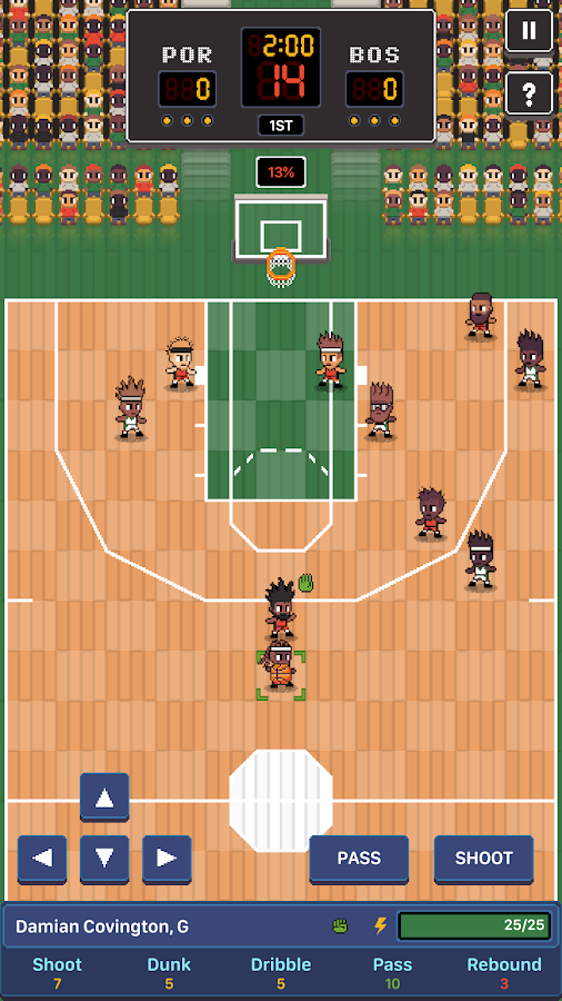 - Turn based tactical gameplay featuring three pointers, dunks, blocks, steals, and more.