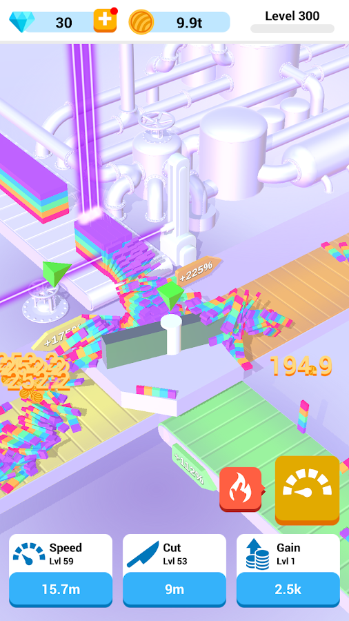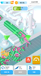 Idle Slice and Dice – a meditative puzzle game with relaxing gameplay that easily relieves accumulated stress. All that is needed is to control the work of a special factory that rhythmically cuts objects (things and goods) into tiny pieces using pre-prepared machines. Wooden logs and watermelons, chewing gum and pencils, pasta and even ginger: the raw materials that fall on a special conveyor in just a few minutes will turn into pieces, slices or “rounds”, which will remain put in a package and put up for sale. And then the circle of actions will be repeated - cutting again, the same earnings? Well, why not have fun?