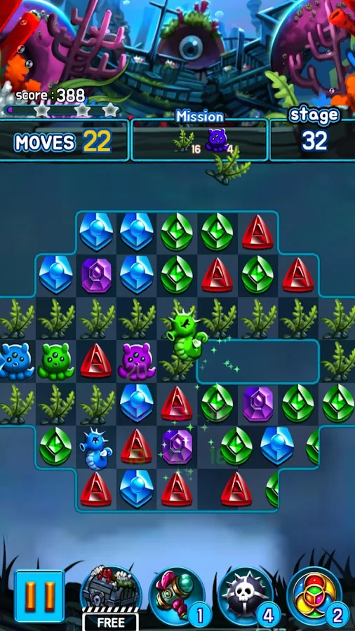 Jewel Kraken is a match 3 game that takes place in the ocean. Match three jewels to blast them. Enjoy the bejeweled game with awesome high quality background. There are special items that have special abilities. Try out different special abilities and find out which one will help you solve the puzzle. New stages are updated monthly. Let's see who can beat all the puzzles.