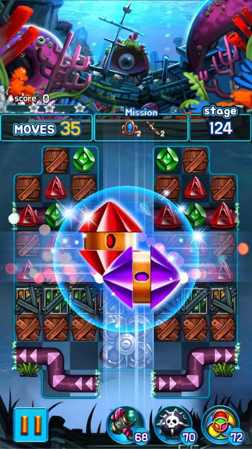 Do you believe in monsters in the ocean? You better! because there is a Kraken nearby the shipwreck. We lost all our jewels in the ocean. The missions is to find the shipwreck and blast the jewels to prevent the Kraken from eating you alive! Blast away as many jewels as possible and as quickly as possible.