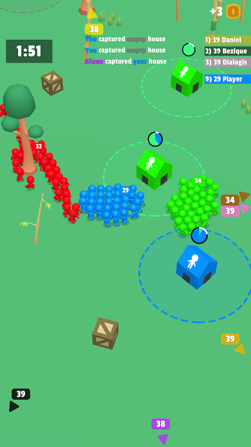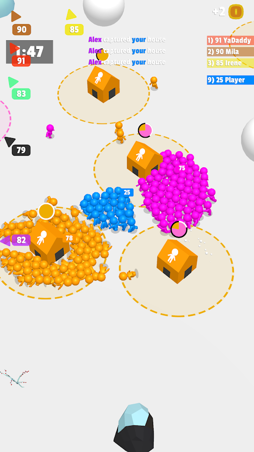 Capture all the houses and grow the biggest crowd!