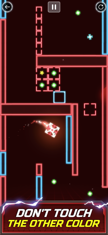 Avoid the opposite color to stay alive, jump from wall to wall and obstacle to obstacle, until you find the exit to get teleported to the next level. Collect as many stars as possible and try to beat all the time records to become the master of the game. Try to conquer level after level, dimension after dimension, with patience, dexterity, and intelligence. Earn rare Skins and with amazing auras and special effects: blazes, ghosts, clones, laser turbine, etc. !