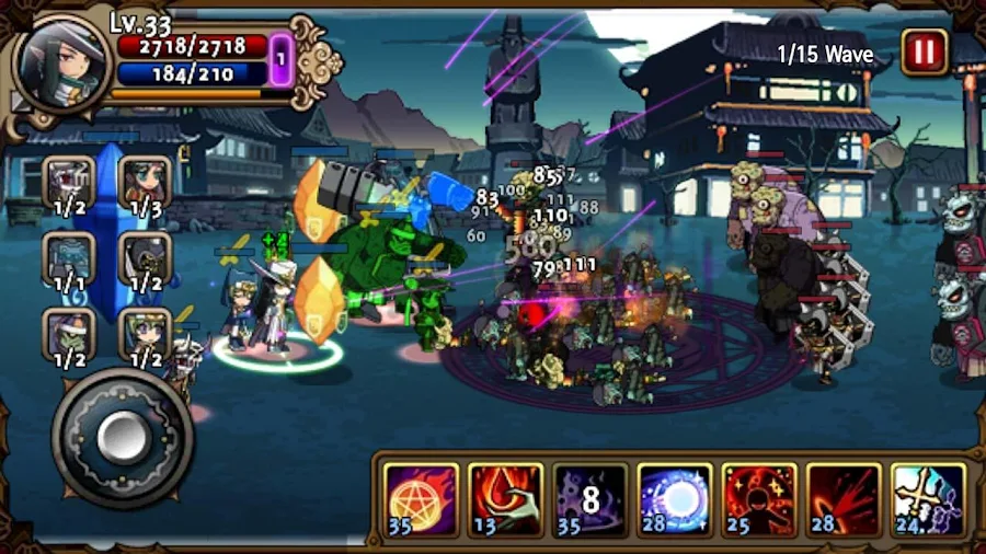 Vampire Slasher Hero – a dark slasher with Tower Defense elements and RPG mechanics, expressed in leveling characters, changing equipment and battling opponents that are constantly gaining strength. The plot is curious: the developers from Mobirix moved events into the past, when a clan of vampires appeared on Earth, turning half of the inhabitants of cities into bloodsuckers. The changes took place almost imperceptibly and extremely quickly. As a result, there were almost no survivors. And only vampire hunters are able to stop the war and save human civilization. But is it really that easy to deal with those whom only an aspen stake and silver bullets can hurt?