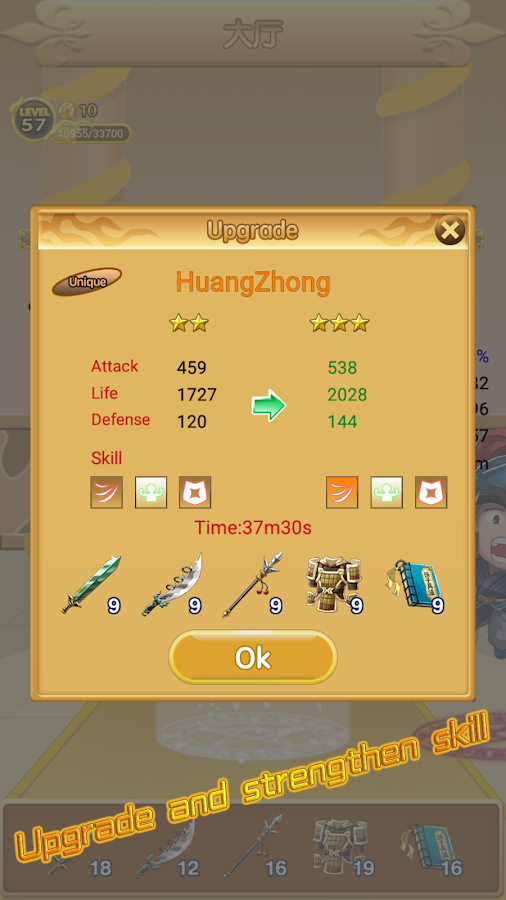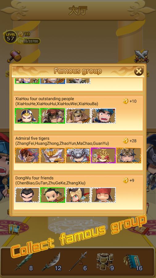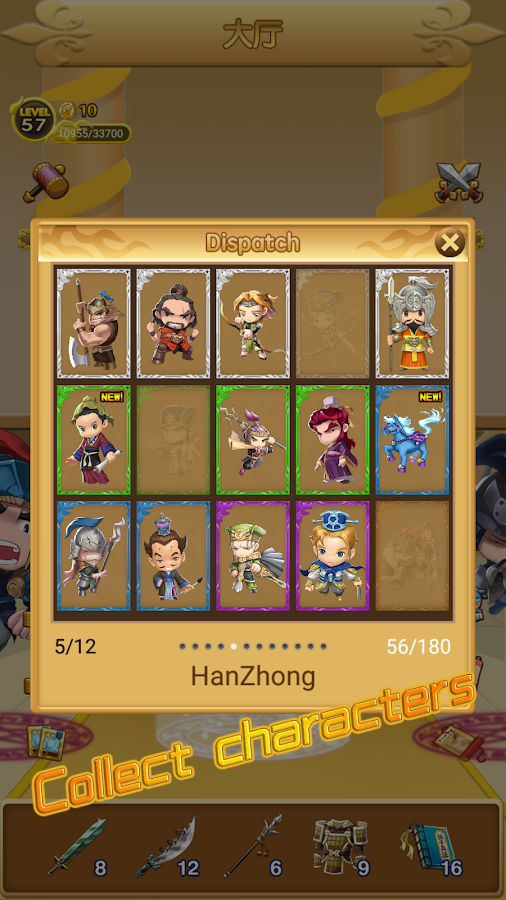 Tap the screen, easy-to-fight and relaxed offline game, up to more than 10 skills, 180 characters of the Three Kingdoms are waiting for you to challenge! Each character can be won through battle victory, constantly upgrade to make yourself stronger, combine to recruit stronger characters, and conquer every city!