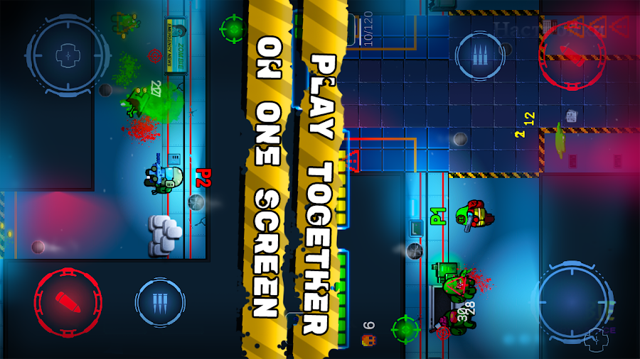 Play space top-down shooter with hor