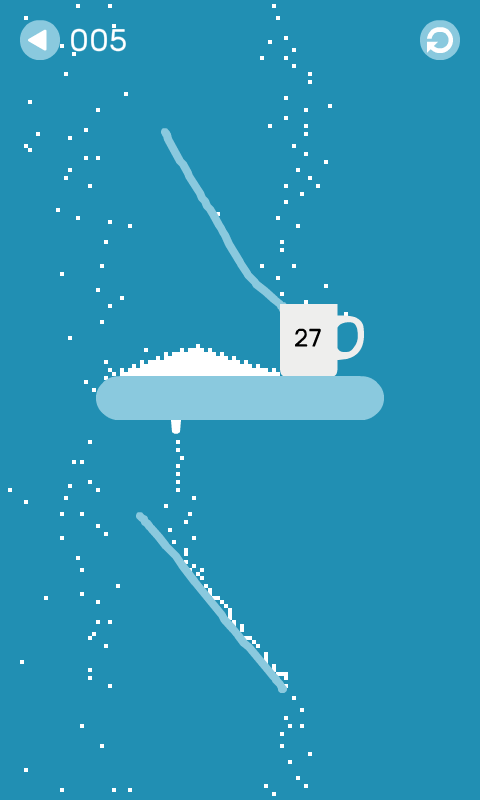 Draw on the screen to direct sugar into the cups. Experience the soothing puzzling with sugar particles trickling across the screen.