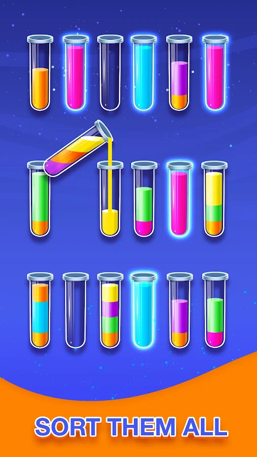 Call your friends and invite your family for an endlessly thrilling solve logic gaming fun. Our game offers an array of new levels. The number of test tubes and balls increases at every level of the game. Apply your gaming skills to arrange the same colors in one test tube and so on to in the game.
