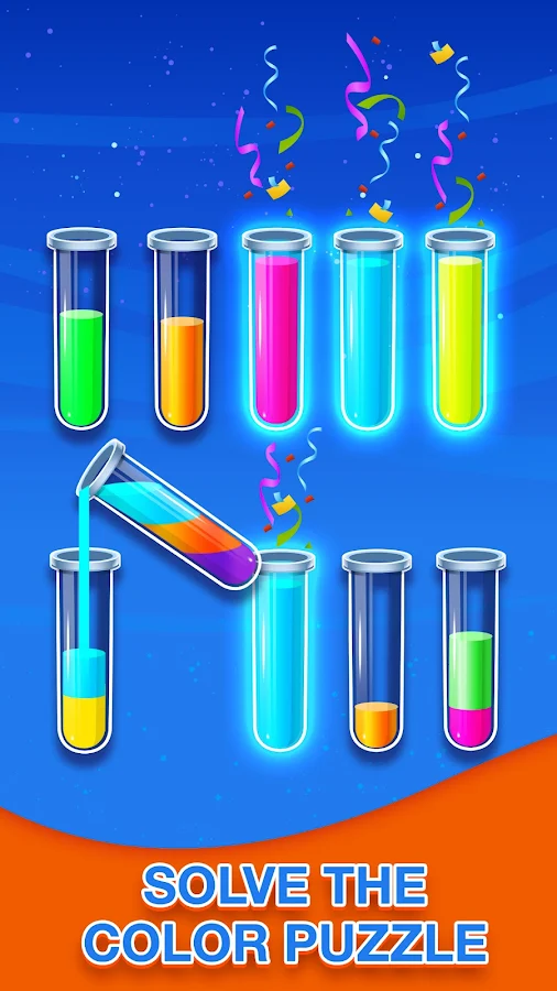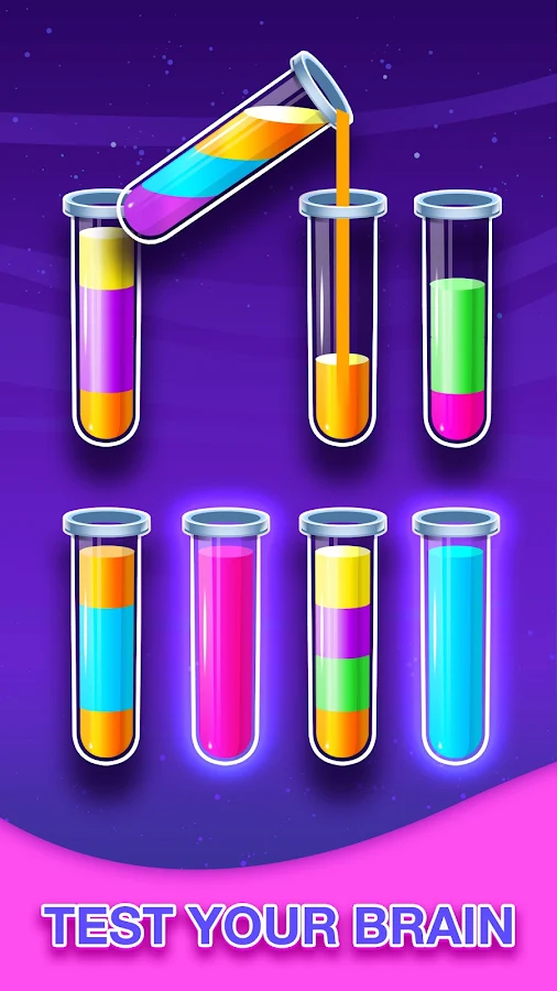 Witness an unconventional match puzzle gaming arena in which you will be required to apply skills, focus and strategy to solve the game by matching colors in as few moves as possible. Test how far you can go at juggling multiple colors, patterns and tubes in a single level at a given time.
