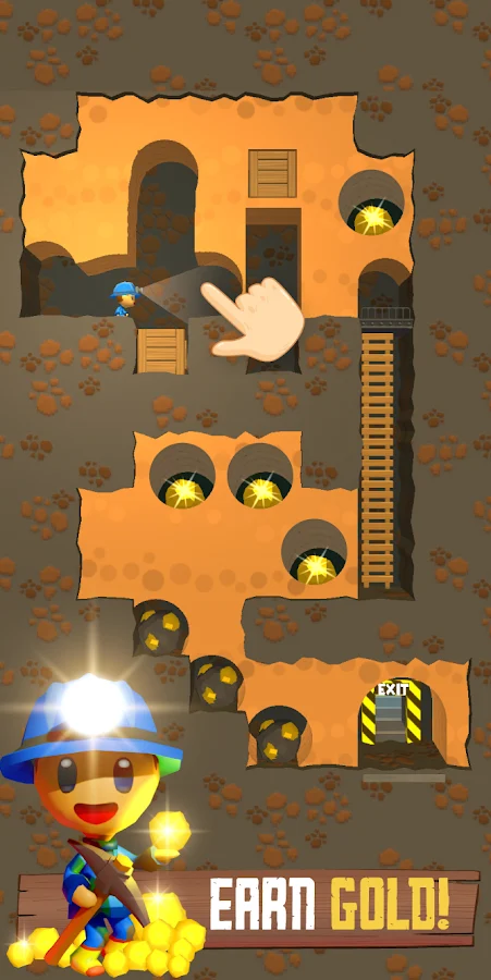 ⛏️The miner is trapped! Help him find the way out by guiding him to the exit. Dig corridors, move obstacles and make a path for the miner to get out of the cave.⛏️