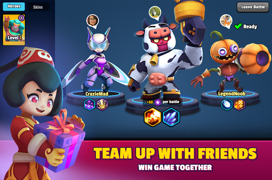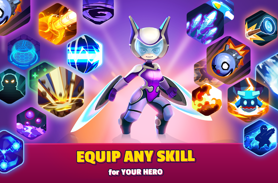 - Echipează-ți eroul cu 2 abilități la alegere, alături de abilitatea eroului principal - o combinație excelentă de strategie și acțiune