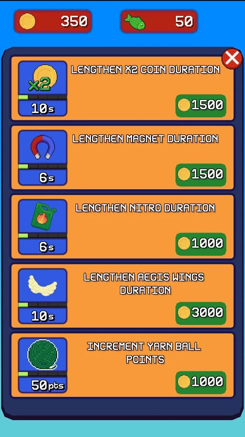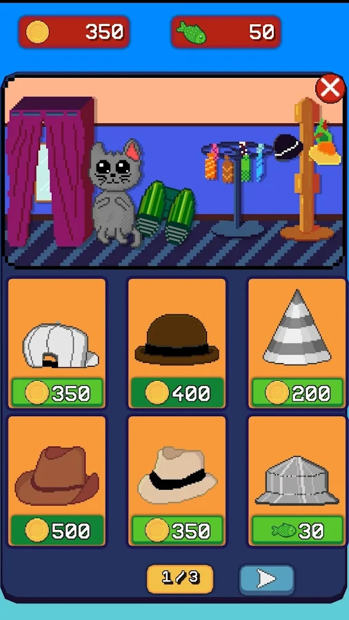 Colectați monede și pește pentru a îmbunătăți puterile și personalizați-vă pisica cumpărând articole frumoase!