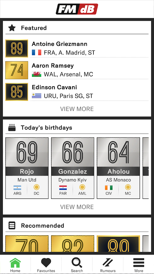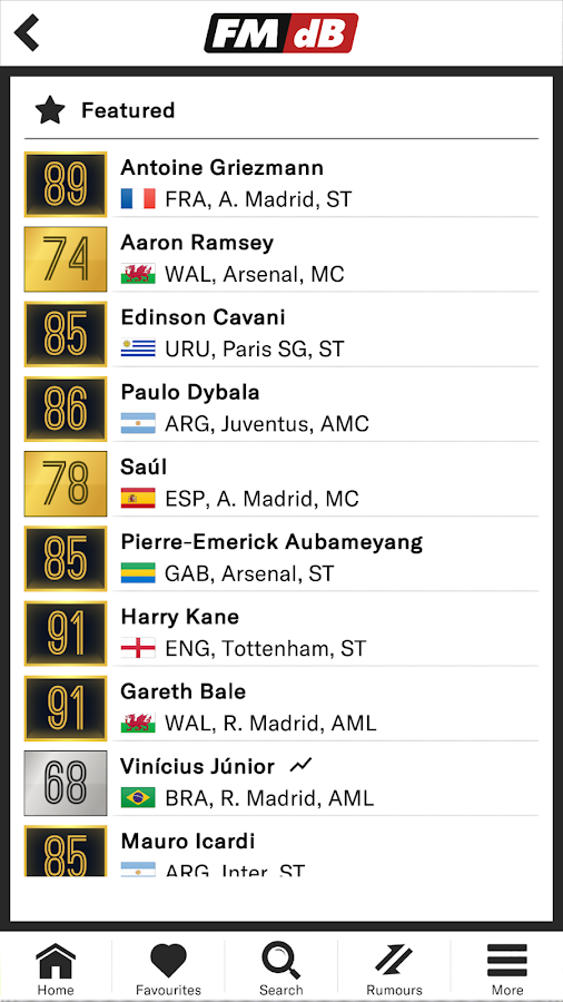 Созданная на основе Football Manager база данных FMdB дает вам доступ ко всей необходимой информации о лучших игроках мира — здесь собраны более 450 000 футболистов из 50 000 команд!