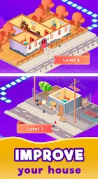 И начать перемены в Idle Life Sim - Simulator Game придется с проработки интерьера личной комнаты. Не помешает рабочий стол, кровать, компьютер. Как действовать дальше – зависит от выставленных ориентиров. Никто не мешает поступить в университет, выслать парочку резюме, заняться программированием из дома. Главное – следить за физическими показателями, увеличивать счет в банке и двигаться к звездам.