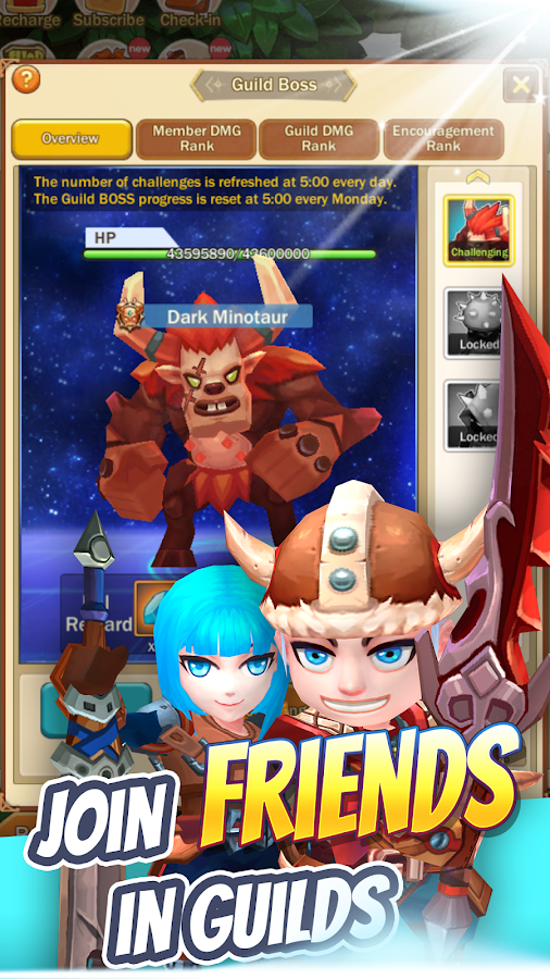 ✔ Создавайте гильдии или присоединяйтесь к ним, чтобы вместе бросить вызов БОССУ!