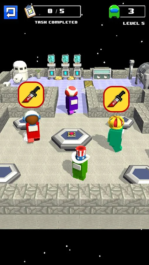 - Нажмите, чтобы перемещаться по космическому кораблю, убивать членов экипажа и саботировать объекты.
